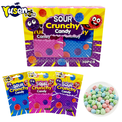 Vente en gros de mini bonbons halal acidulés et sucrés à saveur de fruits, mélange à mâcher croquant personnalisé, dans un emballage en boîte